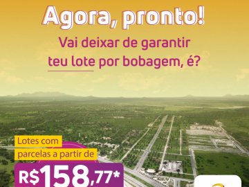Lotes Totalmente sem entrada! parcelas a partir de R$ 158,77 Construção imediata!